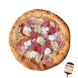 € 13,00Mozzarella fiordilatte 100% latte italiano, pancetta stufata al miele, cipolla rossa caramellata, scaglie di Grana Padano Dop, olio EVO. (1-7 vedi allergeni*)